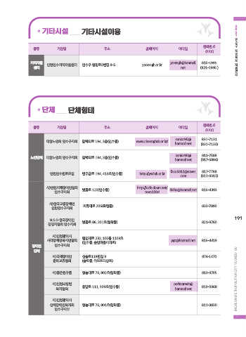 종류 기관명 주소 홈페이지 이메일 지 역 복
